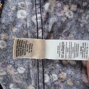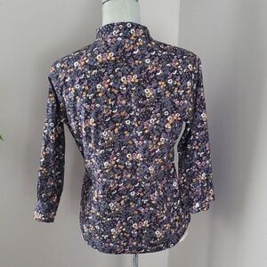L.L Bean daisy pattern shirt features wrinkle-free fabric and three-quarter sleeves is a practical yet stylish choice that combines ease of care with a touch of floral charm. Slightly fitted, 100% cotton.