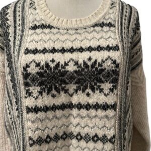 Women's Cabi Black and Cream Winter Patterned Sweater