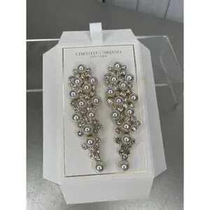 New! Christian Siriano Gold Tone Earrings Chandlier Waterfall Wedding Pearls