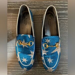 Gucci Blue and Silver Star Loafers