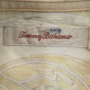 Tommy Bahama Silk Shirt Yellow Wave Swirl Pattern Button Up Short Sleeve Mens M