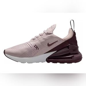 Stylish and comfortable Nike Air Max 270 sneakers. Features a mauve upper with burgundy accents. Perfect for everyday wear.