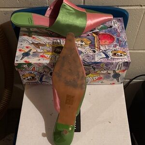 Jeffrey Campbell Satin Mules in Green and Pink