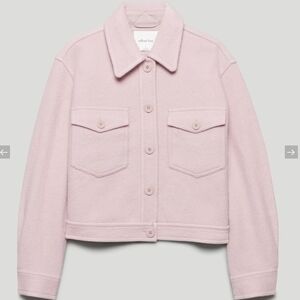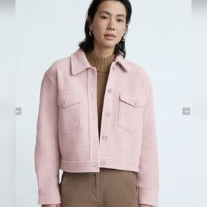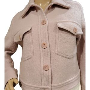 Wilfred Aritzia, Crop Shirt Jacket, 100% Merino Wool, Size S. Baby Pink.
