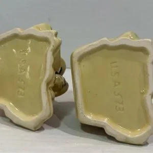 Finished in a glossy multicolor glaze with warm yellow, green, and red tones. A classic example of mid-century figural pottery from one of the most collectible American pottery manufacturers.