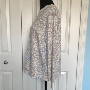 Donating soon make bundles send offers, Great Condition like new Cozy fleece Stars Above Medium Soft Fleece Crewneck Sweatshirt in a soft gray with subtle blue and tan accents/polka dots great stretch 21 inches across chest chest laying flat from pit to pit 16 inches from pit to bottom hem of shirt 19 inches from pit to wrist smoke free home