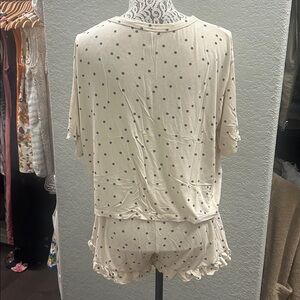 Super cute matching top and shorts in cream color with gray dots. Shorts have a drawstring waist and ruffle trim. In good condition. Bundle and save!