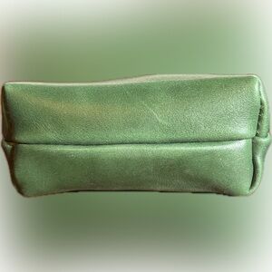 Chic green leather coin purse with scalloped edge. Perfect for carrying small essentials.