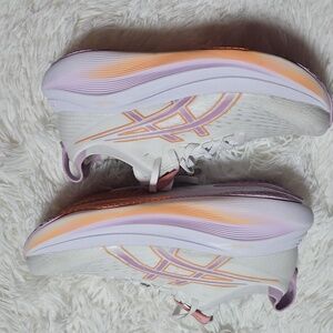 Sleek ASICS shoes with vibrant pink accents. Ideal for running and workouts.Model gel nimbus 27.
