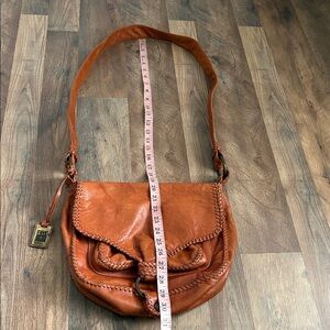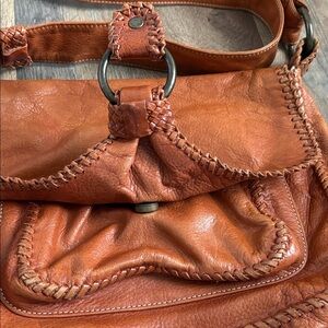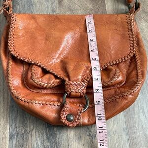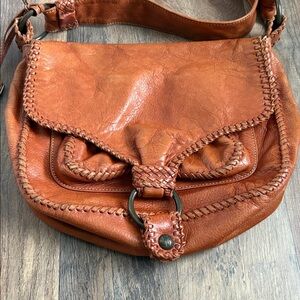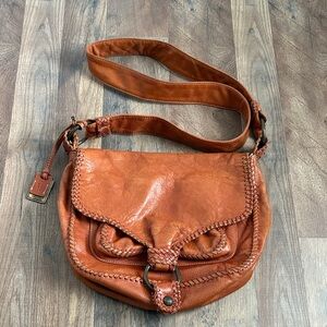 FRYE Cognac Leather Crossbody Saddle Bag Braided Boho Chic Western Inspired