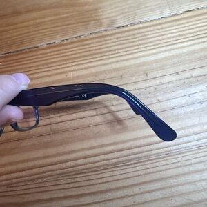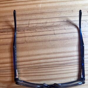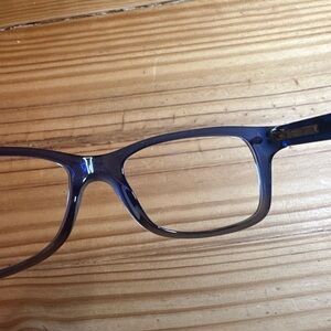 Trendy blue ish purple eyeglasses with a sleek design. Perfect for a modern look.