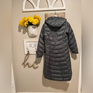 Patagonia Goose Down Full Length Coat Women Sz XS gray Goose Down Hood