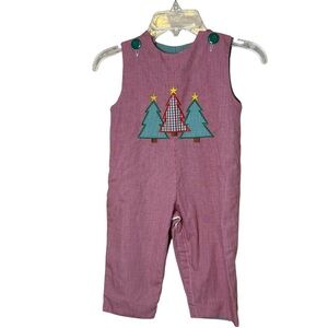 Le Za Me Boys 9M Longall Reversible Jumper Red Plaid Christmas Tree Green Plane