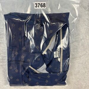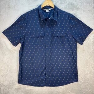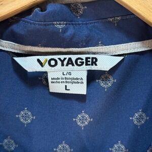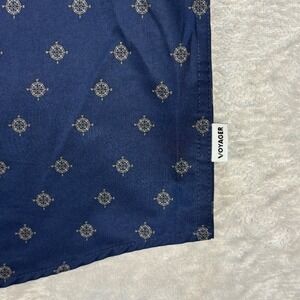 Voyager Men's Compass Print Button Shirt Navy Blue Recycled Stretch Sz L