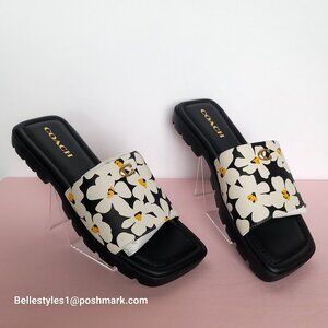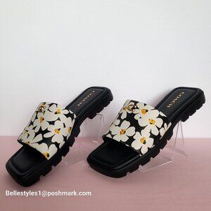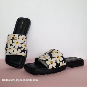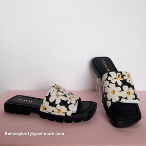 COACH Florence Smooth Leather Sandal With Flower Print -Chalk Multi- Women’s 9B⭐