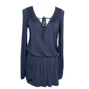 Guess Women's Antonise Ruched Drop Waist Dress Balloon Sleeve Blk Sz XXS