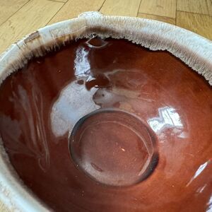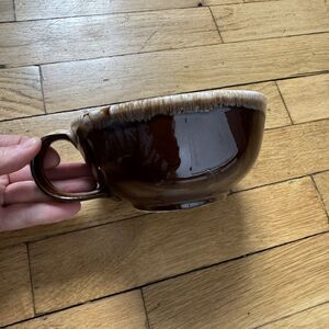 Large Ceramic Soup Mug Bowl Brown Beige Drip Glaze USA Vintage Tableware Mcoy