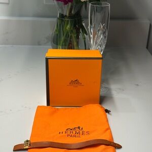 Hermes Leather Bracelet with gold tone hardware + Box + Dusty