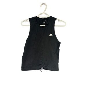 Adidas Black Cropped Tank Top Drawstring Athletic Workout Gym Size S