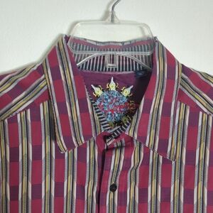 Robert Graham Mens Shirt Button Down Multicolor Plaid Cotton Silk Christmas XL