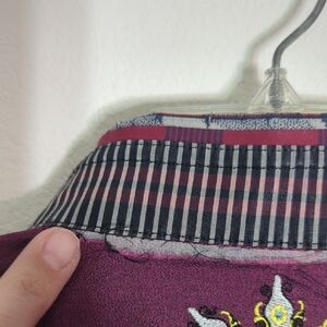 * small flaws on the inside of the collar, please see photos; also one missing button on sleeve