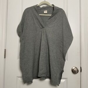 SOMA Tunic Top V-Neck Knit Short Sleeve Gray Oversized Comfy