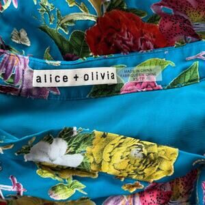 Alice + Olivia Sheila Floral Print Silk Blouse Top Summer Bliss Blue Size XS NWT