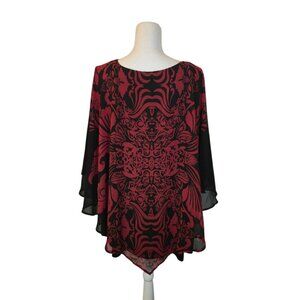 Leebe NWT Chiffon Poncho Blouse Top Women Size 4X Red Feminine Flowy
