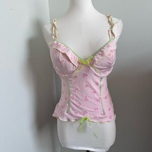 Step into a dreamy 2000s reverie with this sweetheart pink mesh corset cami.