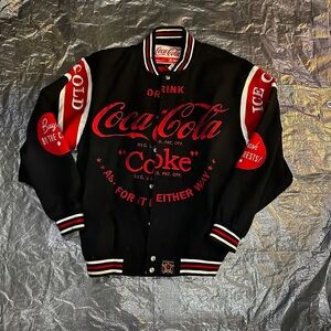 Classic Coca Cola bomber jacket in black with striking red details. Ideal for casual wear and fans of iconic branding.
