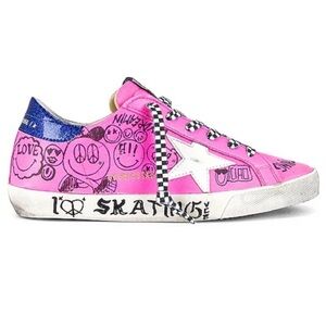 (Used) Golden Goose Superstar Shoes in Fuchsia, Black, White, & Electric Blue