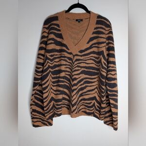 Rails Eleanor, tiger stripe sweater, animal print knit, wool cashmere sweater, designer sweater, cozy neutral sweater, V neck knit, fall winter sweater, capsule wardrobe
