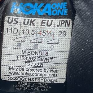 Hoka One One Bondi 8 Running Shoes Mens 11 D Black White Athletic Sneakers
