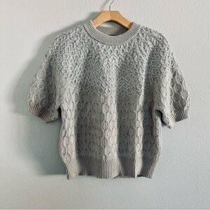 ANN TAYLOR Silver Shimmer Cable Sweater Twead