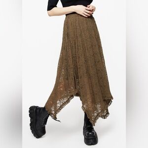 Disturbia Myrtle Floral Lace Handkerchief Hem Midi Skirt US 16 / UK 20