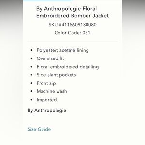 Anthropologie NWT Floral Embroidered Bomber Jacket size XL. The tag indicates size L. This jacket runs large.
