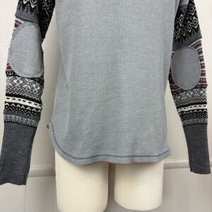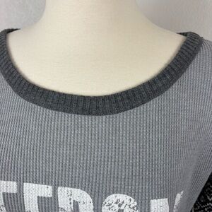 We the Free by FP Thermal Waffle Knit Top "FREEDOM" Size S Gray Grunge Knit