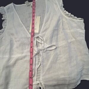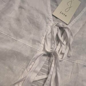 Chic white blouse by Joie. Features a V-neck and tie detail. Sleeveless with a relaxed fit.
