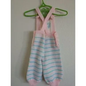 Homemade Girls Knit Overalls Baby 6 Months Safety Pen. Condition is Pre-owned.