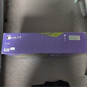 1x car, 1x vet, 1x vet kit, 1x stethoscope, 1x syringe, 1x medicine bottle, 1x laptop, 1x X-ray machine, 1x purple adhesive bandage, 1x halter, 1x table, 1x chair, 1x prescription booklet, 2x sticker sheets , 1x arena shelter, 12x paddock, 1x gate, 1x rider, 1x driving instructor, 2x purple vertical fences, 1x ditch, 1x trophy, 1x English thoroughbred stallion, 1x Appaloosa mare, 1x Appaloosa gelding, 1xAppaloosa foal, 1x assembly instructions.