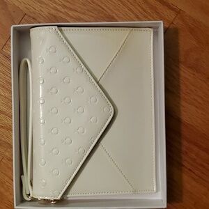 Pandora White Ivory Embossed Clutch Wristlet