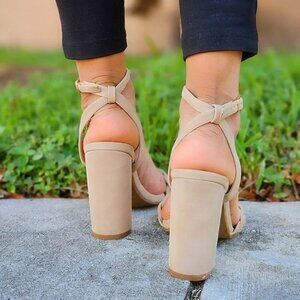 Chic Women’s Nude Braided High Heel Sandals with Side Buckle