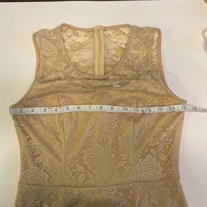 Dressy Star Sleeveless Lace Floral Print A Line Dress Tan Size Small