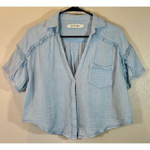 Free People Full Of Light Cotton Tie-Front Light Blue Shirt Women's Small