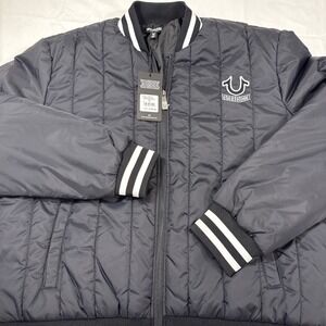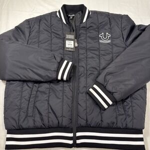 JACKET PUFFER True Religion MENS LRG BOMBER QUILTED COAT WHT TRIM NWT 107823