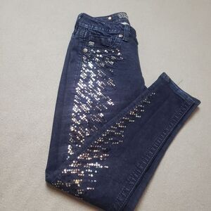 Miss Me Jeans Signature super skinny jeans Dark wash. These are so much fun with sequins down both legs. Excellent condition