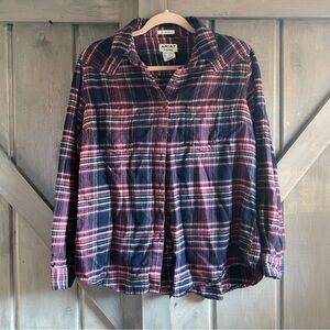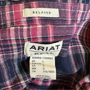 Ariat Women Relaxed Plaid Flannel Pink Navy Button Down Size L