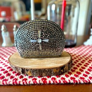Ramal NWOT silver metal beaded stone inlay mosaic small clutch & shoulder chain