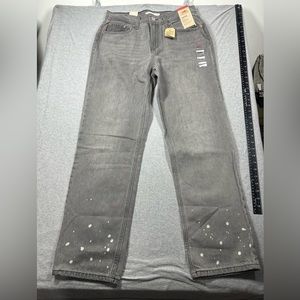 Levis Jeans Womens 29 Gray Denim Low Pro Straight Leg Mid Rise Paint Splatter