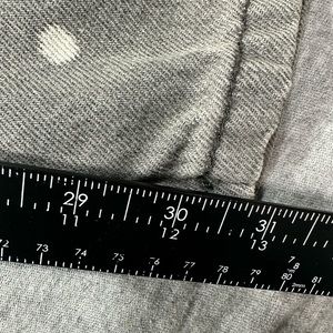 Measures closer to a size 30 when laid flat. Has some staining at the bottom of one leg